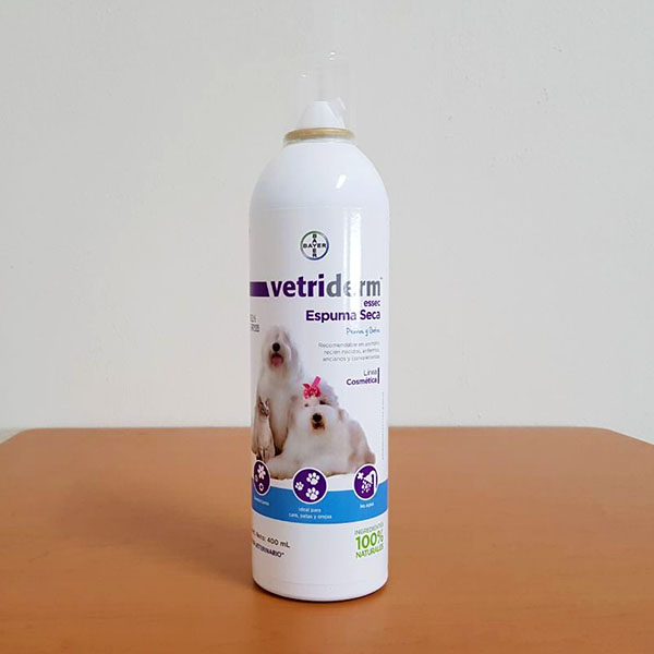 Espuma seca es un producto ideal para el cuidado y la limpieza de perros y gatos cuando por razones determinadas no se puede emplear el agua para un baño normal.